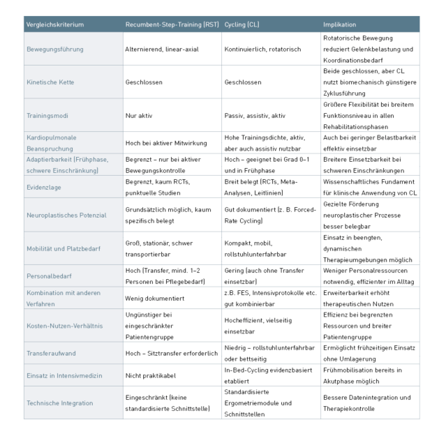 Ein Vergleich von Recumbent-Step-Training und zyklischem Bewegungstraining in der neurologischen und geriatrischen Rehabilitation – biomechanische, funktionelle und evidenzbasierte Bewertung unter Berücksichtigung logistischer und ökonomischer Rahmenbedingungen.